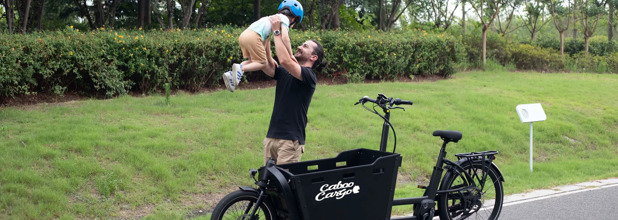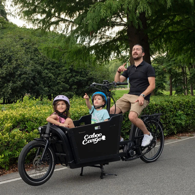 The Caboo Cargo Bike - Basalt is equipped with ultimate steering features along with an active frame design that allows for inclined turns, making children and adults feel safe and comfortable. The sleek design of two wheels saves a lot of space so you can travel around the city effortlessly.