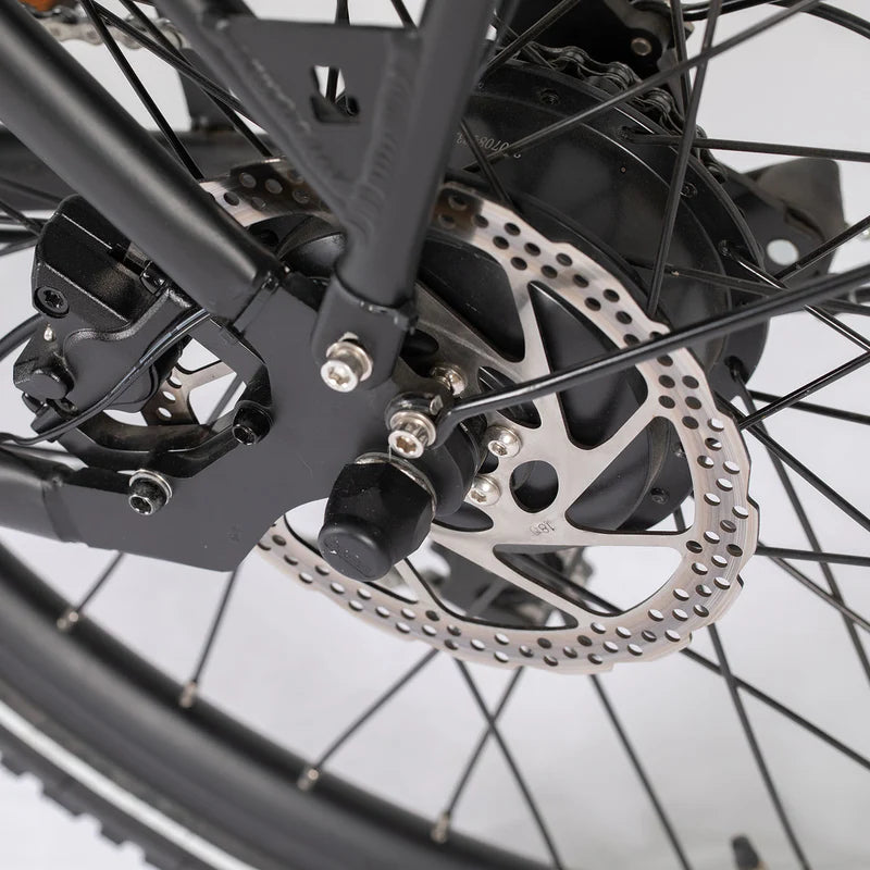 Das Caboo Lastenrad - Starter verfügt über hydraulische Scheibenbremsen mit Sicherheitsparkfunktion, mit der Sie Ihr Lastenrad bei voller Beladung durch sanften Druck auf den Bremshebel schnell, sanft und sicher stoppen können.